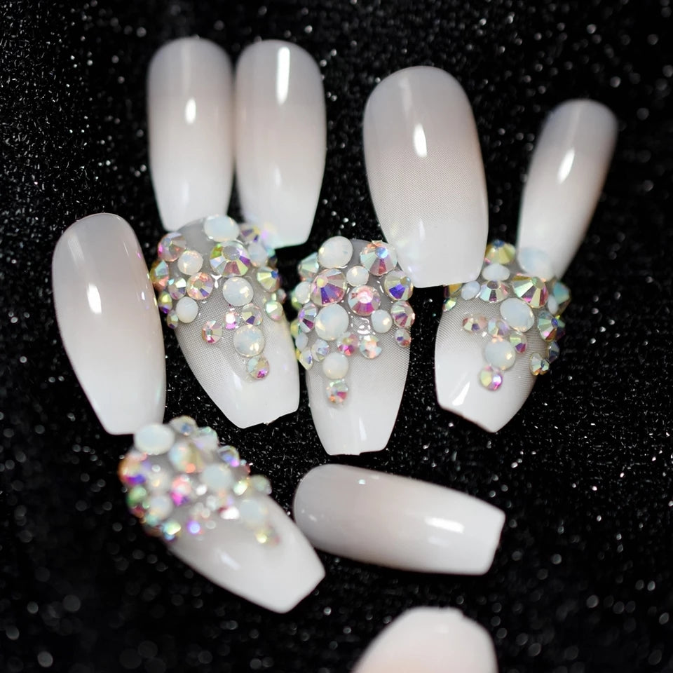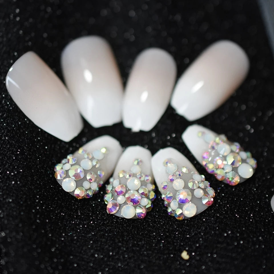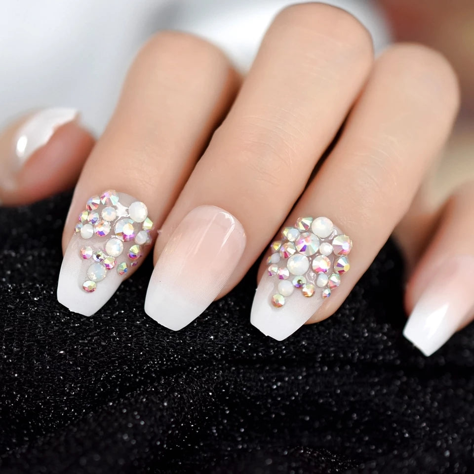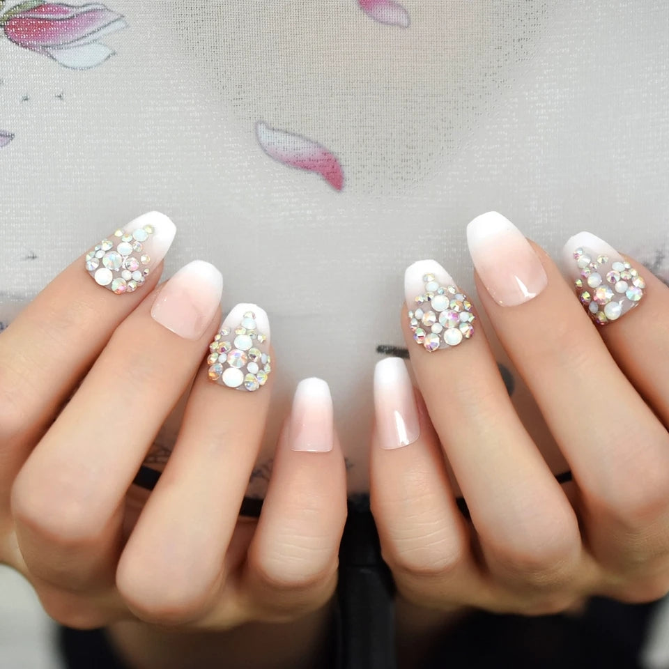 Alexi features a French manicure with beautiful stones and pearls