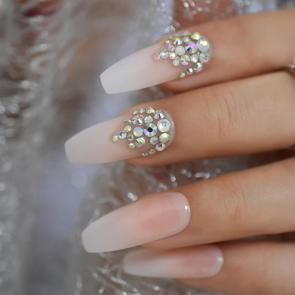 Jasmine features a beautiful natural manicure design with encrusted stone accents!