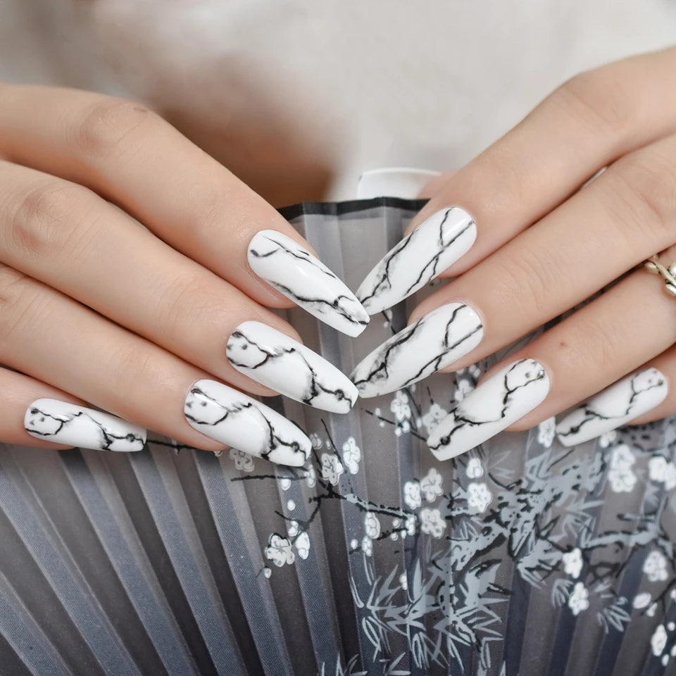 Courtney features a beautiful black/white marble finish!