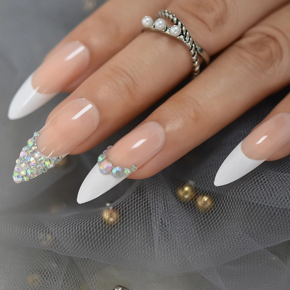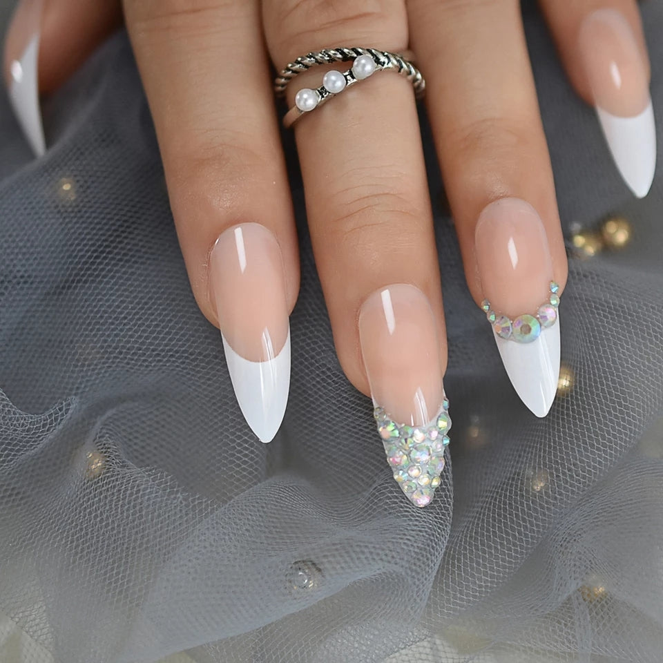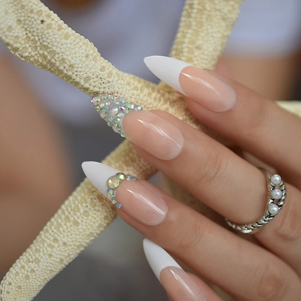 Mary features a beautiful french manicure finish and beautiful stone accents!